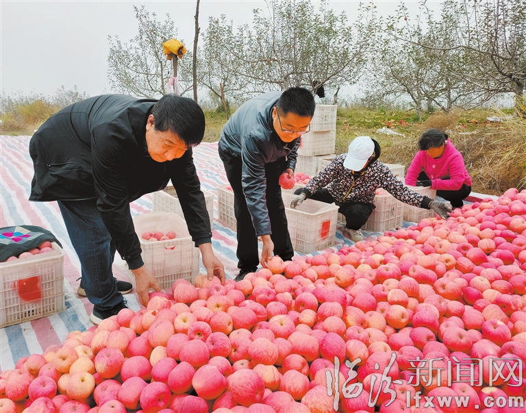 连日来,国家电网大宁县供电公司驻大宁县太古镇坦达村工作队展开行动,帮助坦达村果农抢收苹果,减少灾害造成的损失。 冯振兴 摄