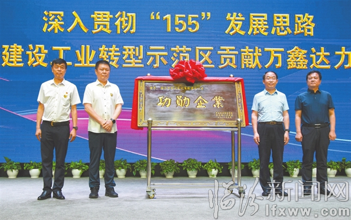 县委书记乔飞鸿,县委副书记、县长刘春林为企业颁授牌匾