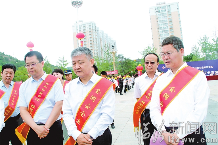 安全生产月活动期间,乡宁县委书记杨建军,县委副书记、县长王林波,县委常委、副县长马平等县四大班子领导走上街头,宣传安全生产法律法规。