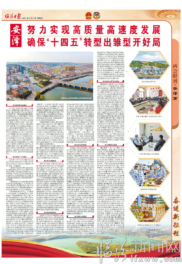坚持逢山开路、遇河架桥,以更大的决心和力度深化改革、开拓创新,为发展注入强大活力。要抓好重点领域改革。能源革命综合改革要以市里加快打造太岳现代煤化工氢能发展基地为契机,延伸发展精细煤化工产业,推动煤炭清洁高效开发利用。用好中石油马壁东4亿方煤层气产能国家示范项目,把煤层气资源优势转换为用气价格优势。农村改革重点深化“三块地”改革,保障农民合法权益,积极稳妥开展闲置宅基地和闲置农房盘活利用,提高农村土地资源利用效率,增加农民土地财产性收入。要抓好创新引领。高度重视培育企业研发能力,强化企业技术创新主体地位,争取让更多的成熟科技成果在安泽优先转化。要聚焦“六新”重点突破,加大5G基站建设,实现县城主城区连续覆盖,重点推进永鑫5G+智能焦化等5G+工业互联网融合应用标杆项目建设。持续巩固深化与同济大学、北京中医药大学等科研院所的战略合作,促进科研成果的转化落地。要进一步健全人才工作机制,坚持引用并举,持续完善高层次人才联系服务机制,以优惠政策集聚人才。要抓好金融助推。金融机构在盘活存量的基础上,也要“活水养鱼”,适当增加信贷资金投放,特别要围绕建设“一区一河”、打造“五个安泽”工作重点,把更多的金融资源配置到重点工作、重点项目建设上。要增强忧患意识,强化底线思维,突出问题导向,坚持主动防范,不断完善金融监管体系,全力防范化解政府债务风险,摸清隐性债务底数,管好县级债务,确保全县金融安全高效稳健运行。