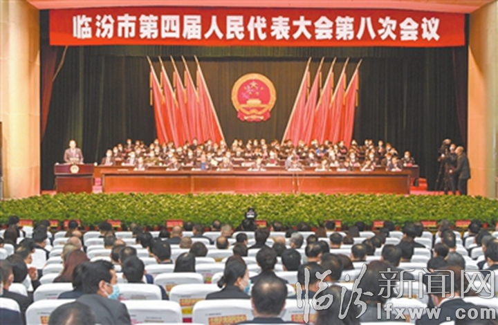 上午9时,陈小洪宣布:临汾市第四届人民代表大会第八次会议开幕。全体起立,奏唱国歌。