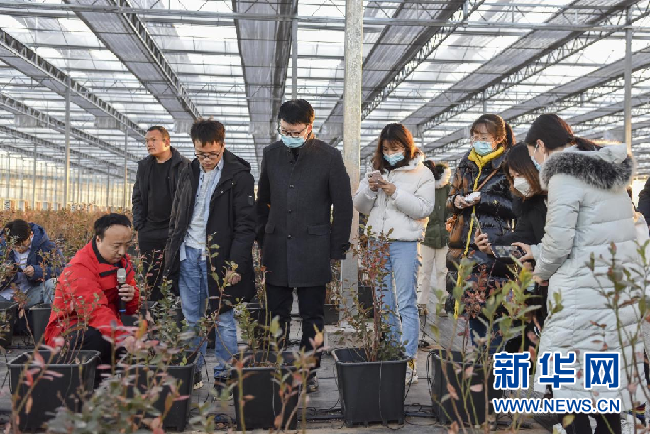 山西农谷青年创业园讲解员向采访团介绍植物生长情况。 新华网 发