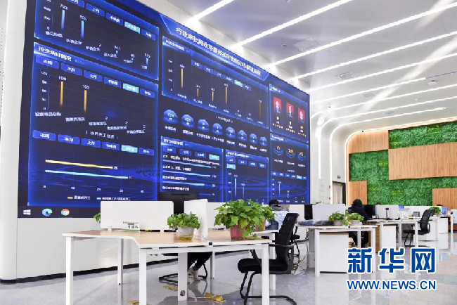 晋中市开发区企业服务中心里的政务服务实时数据动态管理系统。 新华网 发