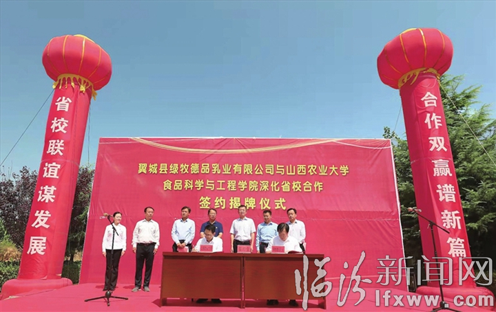 今年6月以来,各县(市、区)积极与国内高校开展全方位合作。图为翼城县绿牧德品乳业公司与山西农业大学食品科学与工程学院签约。