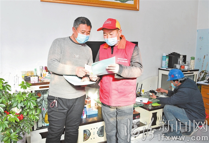 临汾新闻网讯 为保障春节期间用电安全,国网电力尧都区供电公司大阳镇供电所黎明共产党员服务队,入户排查用电安全隐患、发放便民服务联系卡,受到群众好评。图为该服务队队员向古贤村村民宣传用电知识。