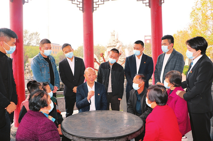 原贵生在河津市龙门村鱼跃龙门文化园给村民传达二十大精神,分享学习感悟。董文霞摄