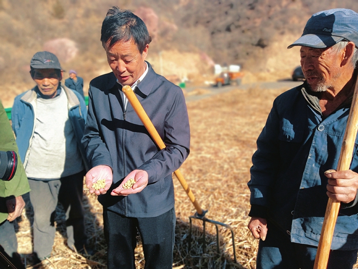 “王书记回来了!”秋阳高照,秋风飒飒,灵丘县红石塄乡下车河村,正在打谷场上拾掇黄豆的村民们,突然注意到村党支部书记王春出现在身边,便不约而同地拥了上来。