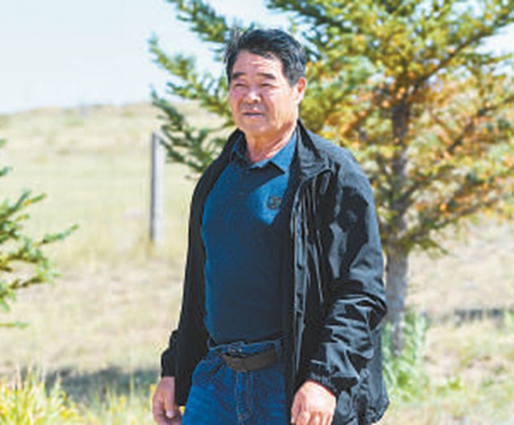 廷·巴特尔在自家草场上。新华社记者 刘 磊摄