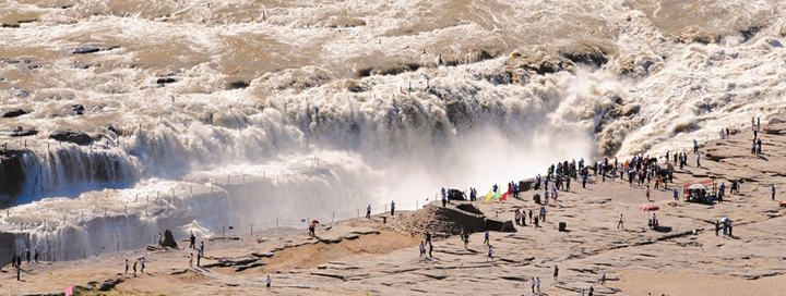 国家5A级旅游景区黄河壶口瀑布气势磅礴。