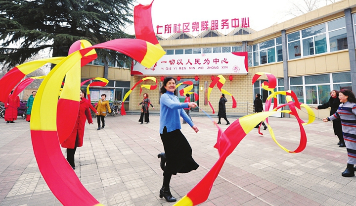 侯马市社区居民彩绸舞蹈队舞出新生活。