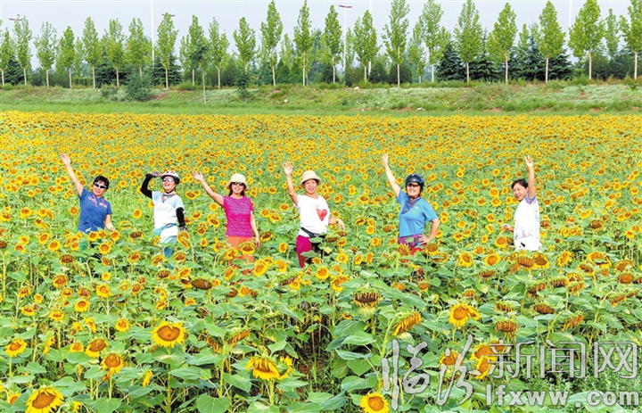 洪洞县大槐树镇南营村向日葵基地吸引了众多游客打卡