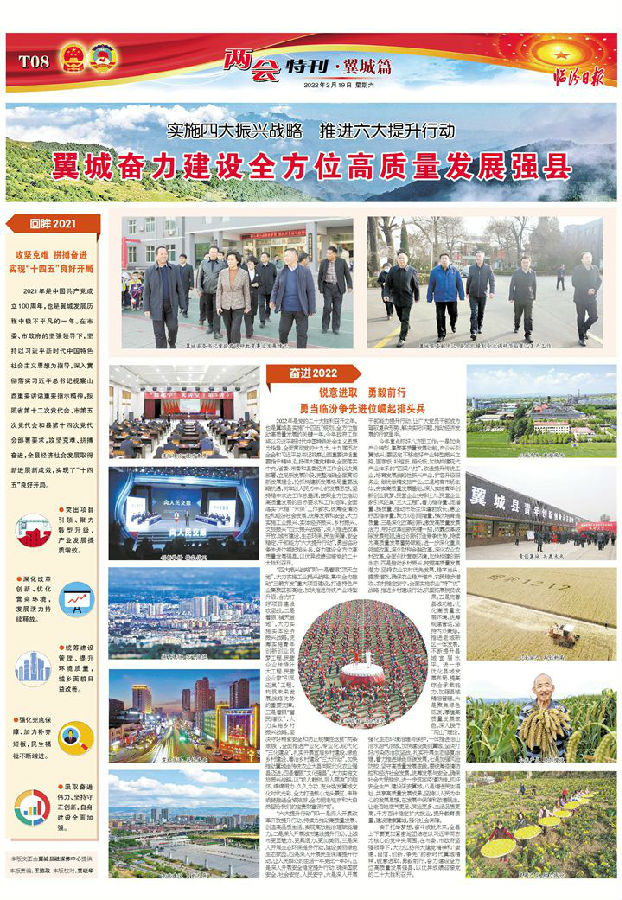 2021年是中国共产党成立100周年,也是翼城发展历程中极不平凡的一年。在市委、市政府的坚强领导下,坚持以习近平新时代中国特色社会主义思想为指导,深入贯彻落实习近平总书记视察山西重要讲话重要指示精神,按照省第十二次党代会、市第五次党代会和县第十四次党代会部署要求,攻坚克难、拼搏奋进,全县经济社会发展取得新进展新成效,实现了“十四五”良好开局。