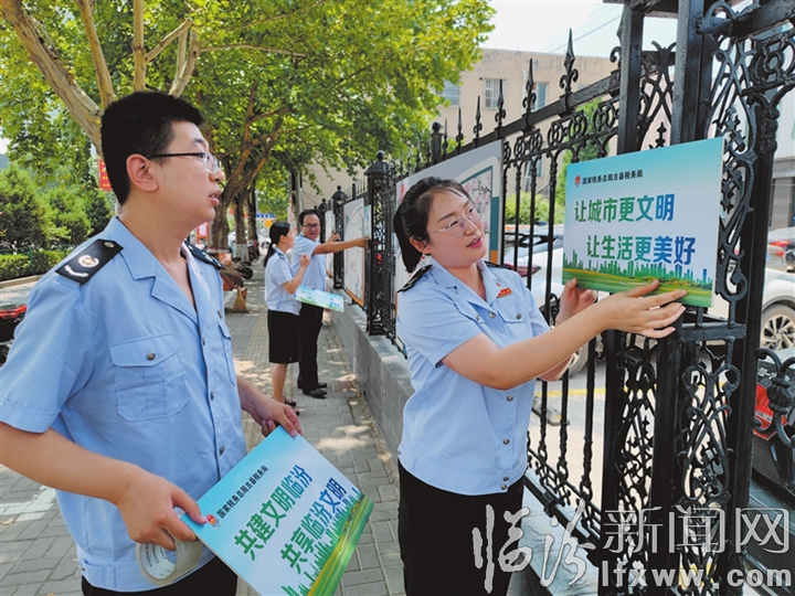 临汾新闻网讯 8月5日,国家税务总局古县税务局的青年志愿者在张贴文明城市标语。连日来,该局紧紧围绕全市省级文明城市创建工作,举办了“做文明人,创文明城”主题实践活动,以实际行动为文明城市创建贡献力量。