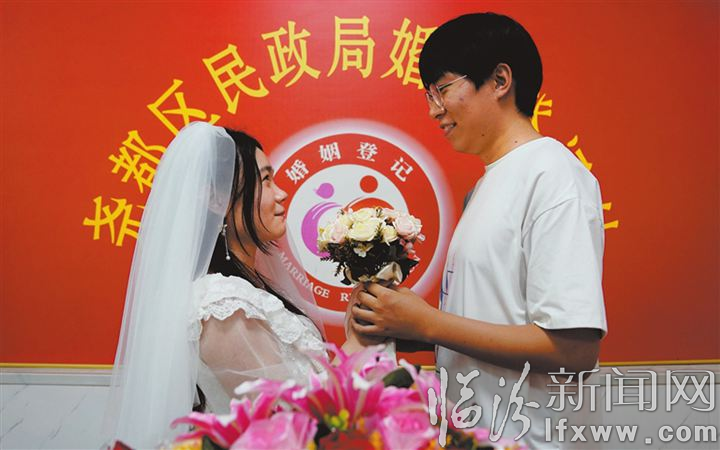 临汾新闻网讯 8月4日,农历七月初七,是我国传统节日“七夕”。在尧都区民政局婚姻登记处,一对新人选择在这个特殊的日子里进行结婚登记。截至当日16时,已有92对新人在该登记处完成领证。
