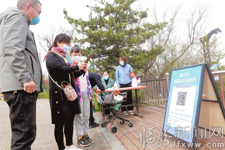 临汾新闻网讯 近日,在市区涝洰河公园入口处,工作人员依次查验“两码”和“场所码”,提醒市民入园期间戴好口罩,注意个人防护。