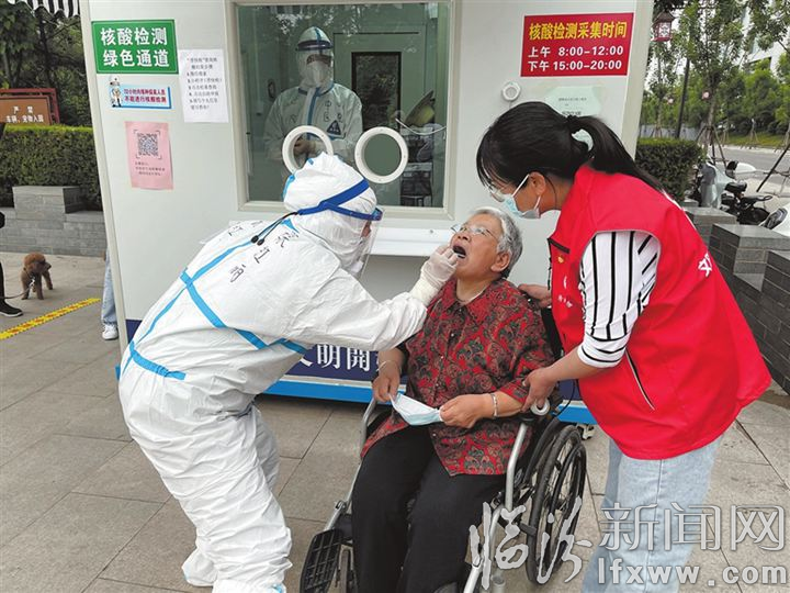 临汾新闻网讯 自5月20日起,我市启动常态化核酸检测工作,全面开放525个便民核酸采集点,采取多项措施为群众提供暖心、便捷的服务,全力保障不同群体的核酸检测需求。图为95号便民核酸采集点为老人、儿童、孕妇等特殊人群开辟绿色通道。
