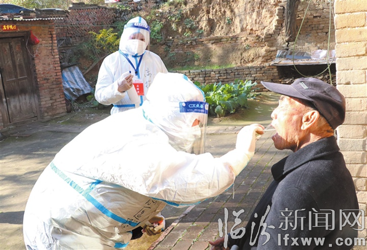 临汾新闻网讯 11月14日上午,霍州市北环路街道办事处永合社区,来自市中心医院的医护人员上门为居民进行核酸采样。