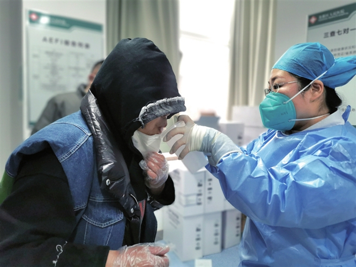 临汾新闻网讯 日前,临汾全面启动新冠病毒疫苗第二剂次加强免疫接种工作,首批吸入式新冠疫苗投入使用,不用打针,一呼一吸之间便可完成新冠疫苗接种。本次疫苗接种的目标人群为高感染风险人群、60岁以上老年人、有严重基础性疾病的人群以及免疫力低下的人群,且需在完成第一剂次加强免疫接种满6个月后方可接种本次疫苗。图为尧都区人民医院为重点人群进行接种。