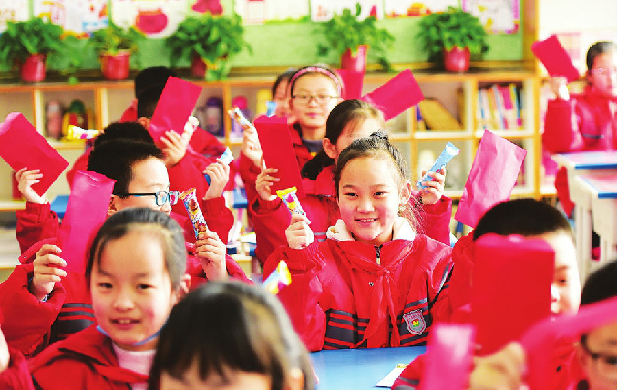 2月17日,长治市潞州区上南街小学给同学们送去最好的开学祝福。梁栋摄