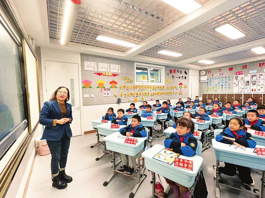 2月17日,山西省实验小学在严守疫情防控要求的基础上,以“我们一起向未来”为主题,营造了浓厚的开学氛围。 记者 阮洋 摄