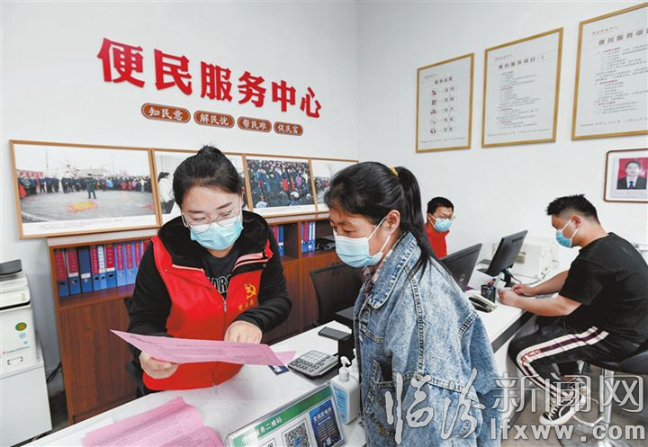 ▲ 在村便民服务中心,党员志愿者在为村民讲解相关政策。记者 闫锐鹏 摄