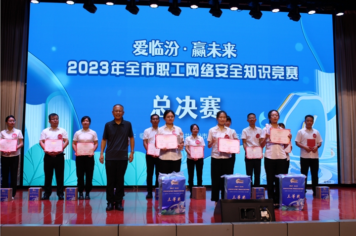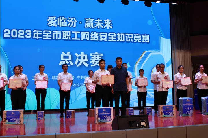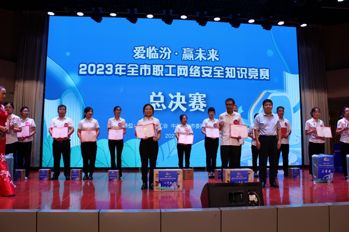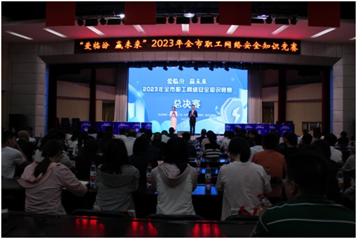 9月12日,由临汾市总工会、中共临汾市委网信办、临汾日报社主办的“爱临汾·赢未来”2023年全市职工网络安全知识竞赛决赛火热开赛。市总工会、市委网信办、临汾日报社等领导同志与200余名观众齐聚现场共同观看比赛。