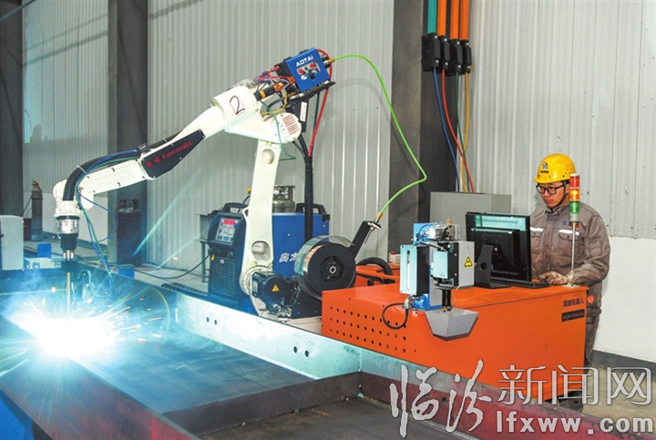 山西中部智造科技公司数字智能焊接机器人生产线。