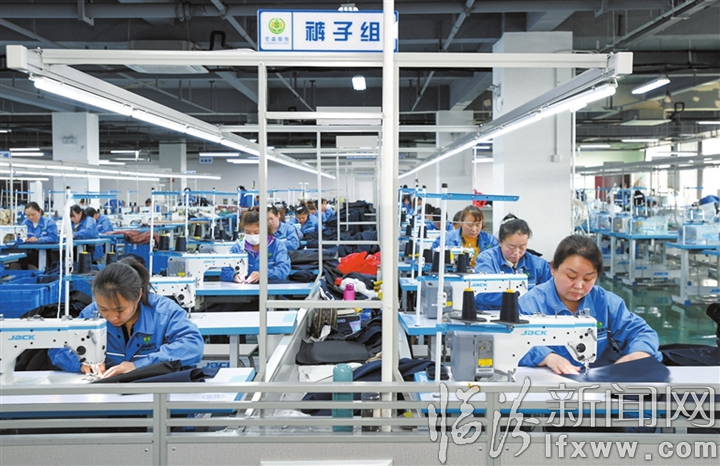 临汾农村集体经济宏淼服饰公司缝纫车间。