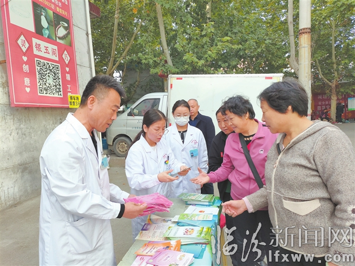 临汾新闻网讯“两节”期间,为方便广大百姓寻医问药,及时准确快捷应对各类突发事件的处置,尧都区医疗集团屯里镇卫生院不仅为辖区居民提供正常服务,而且在辖区滨港龙湾小区开展健康科普宣传并进行义诊。图为医务人员为居民发放宣传手册。