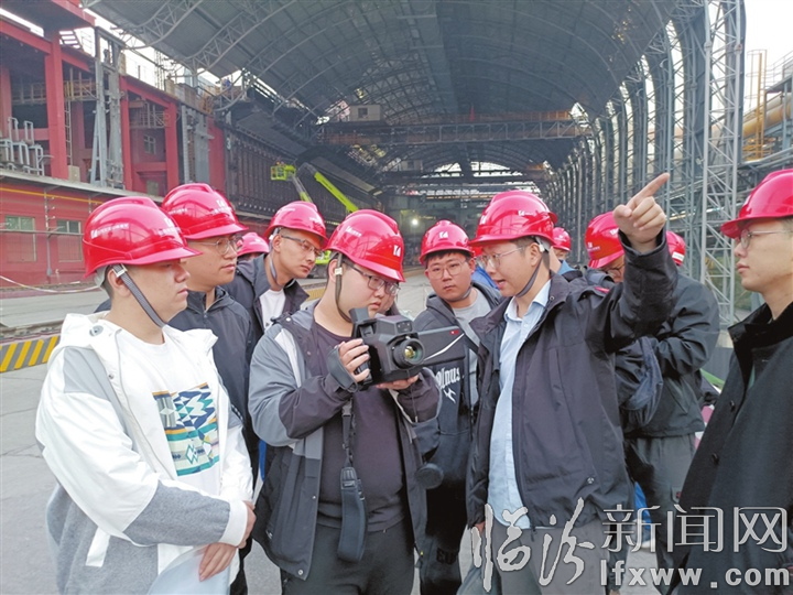新入职人员在焦炉旁使用红外热成像气体泄漏检测仪查看焦炉、管道有无“跑冒滴漏”情况。