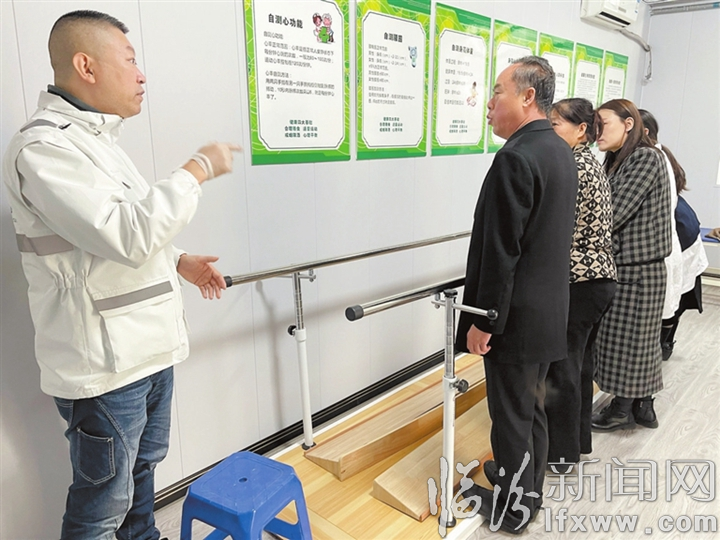 向村民普及科学锻炼方法。 记者 李 静 摄