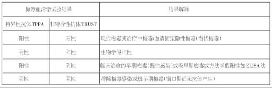 需结合两种抗体的状态共同判断患者目前的梅毒状态。(见下图)