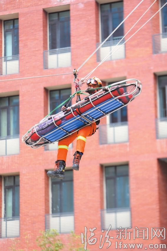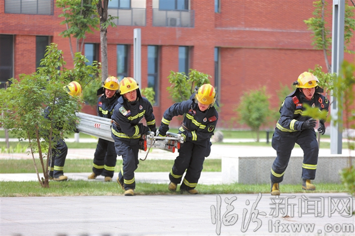 临汾新闻网讯 5月31日,2024年全市“安全生产月”活动启动仪式在山西电子科技学院举行。图为市消防救援支队开展应急演练。