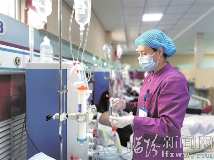 ▲正月初二,市第三人民医院透析室护理人员为患者做透析