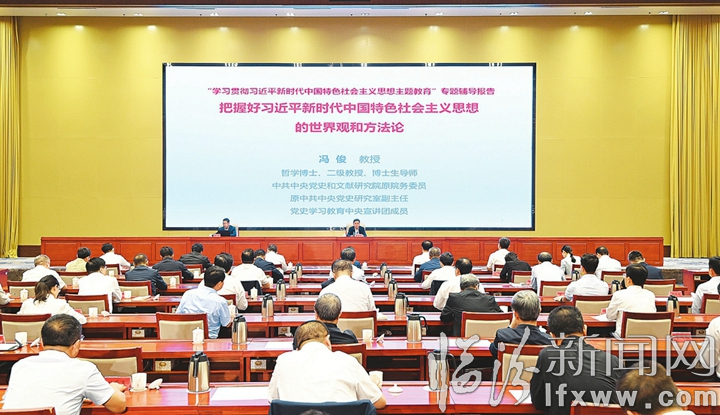 报告会上,冯俊全面系统讲解了习近平新时代中国特色社会主义思想的科学体系,深刻阐释了“两个结合”“六个必须坚持”等世界观、方法论的深刻内涵和重大意义,视野开阔、论述精辟,对于更好理解、把握和运用习近平新时代中国特色社会主义思想的世界观和方法论提供了有力指导。