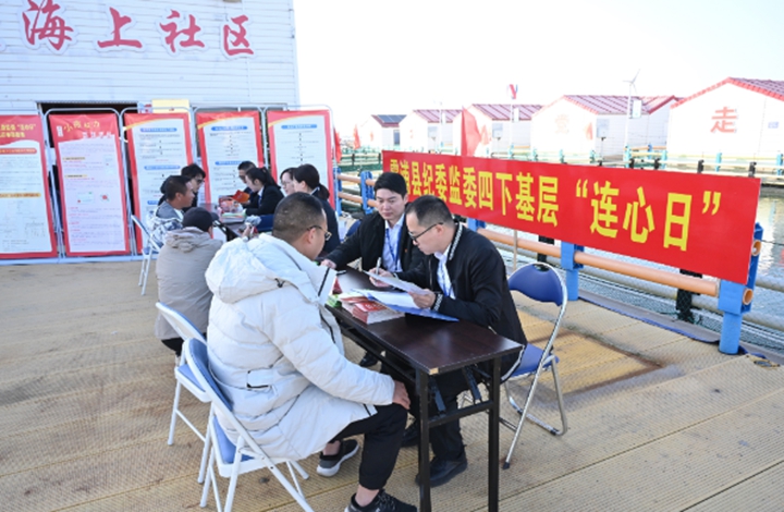 近日,中央主题教育领导小组办公室发出通知,要求把学习推广“四下基层”作为第二批主题教育重要抓手。这是2023年11月18日,福建省宁德市霞浦县纪委监委工作人员在溪南镇七星海上社区接访。