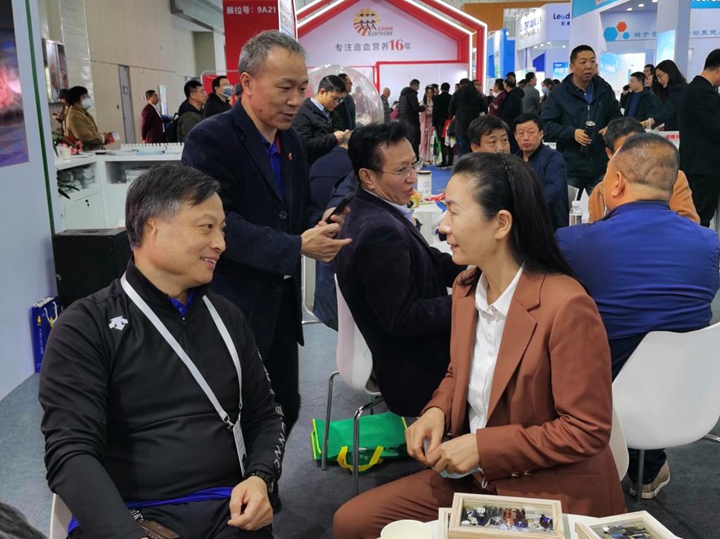梁代华在展会上调研企业发展情况。(受访者供图)