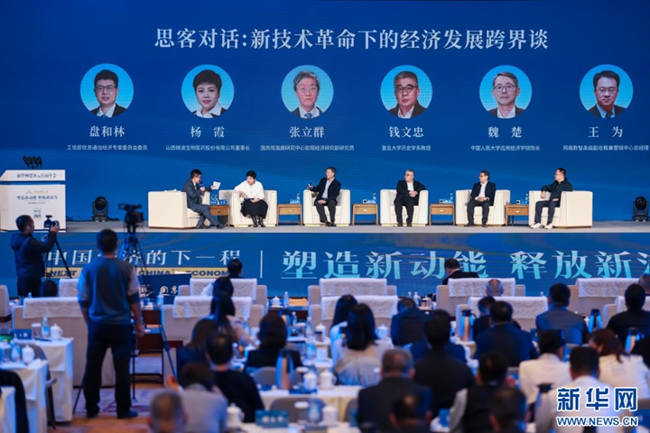 新华网思客云丘山年会现场,图为《思客对话:新技术革命下的经济发展跨界谈》。新华网 发