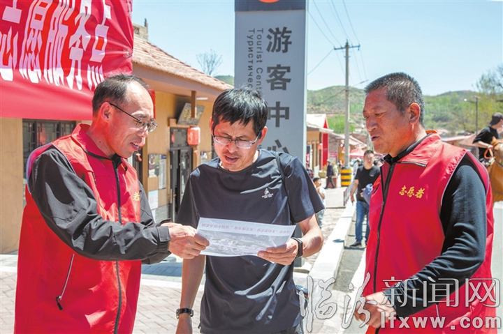 图②为在浮山县“多彩寨圪塔·欢乐康养游”文旅活动中,该县志愿者为广大游客提供咨询、景点介绍等服务。赵玉虎 摄