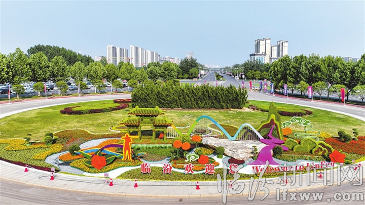 临汾西站站前广场“临汾欢迎您”大型主题花坛