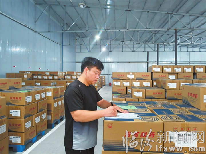 “我们公司一共有3个成品库,这里是一库,成品库的温度和湿度都有严格要求,温度要控制在10℃到30℃之间,湿度需要控制在35%到75%之间。”刘鹏东说,汾河制药对成品库的管理要求十分严格,除了对温度和湿度的严格把控外,工人搬运药箱时,也必须正面朝上、轻拿轻放。