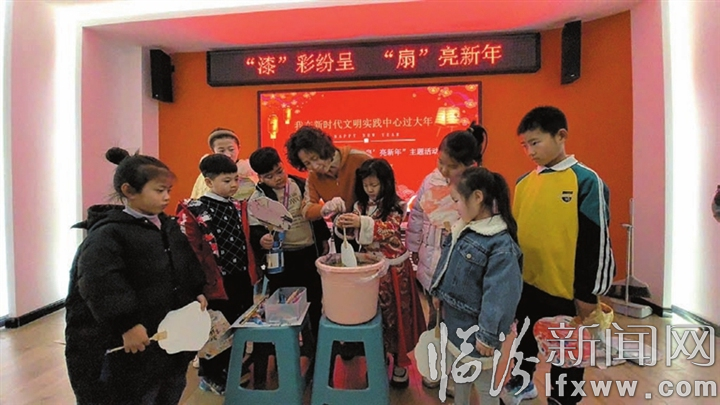 临汾新闻网讯 近日,尧都区水塔街道阳光社区开展了以“漆彩纷呈 扇亮新年”为主题的漆扇文化体验活动。孩子们在指导老师的引导下,纷纷动手尝试制作漆扇,体验传统技艺魅力。此次活动在为新春佳节增添浓厚氛围的同时,也让孩子们度过一个充实、快乐的寒假生活。图为活动现场。