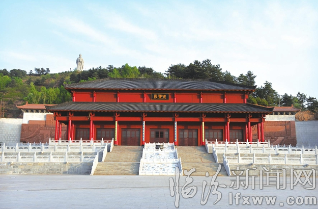 山门依山而建,蔚为壮观。亭台楼阁典雅别致,园内建筑全部仿战国风格。荀子大殿,重檐庑殿顶,气势宏伟,风格古朴,殿内汉白玉荀子雕像依案席地而坐,重现其当年讲学风采。