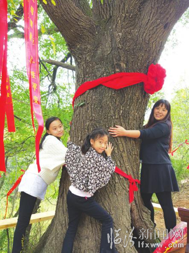 令人称奇的是,这株古槐挺拔苍劲,但树干中间是空的,中空的树干间又长出一株枝桠,极像母亲怀抱婴儿,所以又有“古槐抱子”的美誉。
