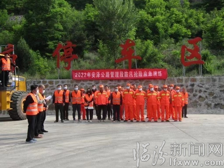 临汾新闻网讯 5月26日,安泽公路管理段开展防汛抢险应急演练。