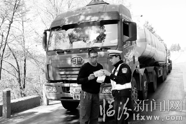 为进一步保障辖区内道路交通安全,切实做好交通安全宣传工作,近日,安泽县交警大队针对近来309国道危化品车剧增的现状,印制“致危化品运输车驾驶员”卡片,逐车发放到驾驶员手中,营造浓厚的宣传氛围,提醒驾驶员做到不疲劳驾驶、不超载超速行驶,从源头上预防和减少道路交通事故。