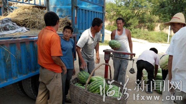 连日来,久负盛名的大宁西瓜正在源源不断的销往外地。在大宁县红卫大桥南外环路的西瓜交易市场,桥路两侧,载满西瓜的大小车辆、农用三轮车一眼望不到头,买卖双方讨价还价进行交易。一些外地的西瓜大商直接把生意做到了瓜田。图为太古乡坦达村瓜农正在销售西爪的场面。冯振兴摄