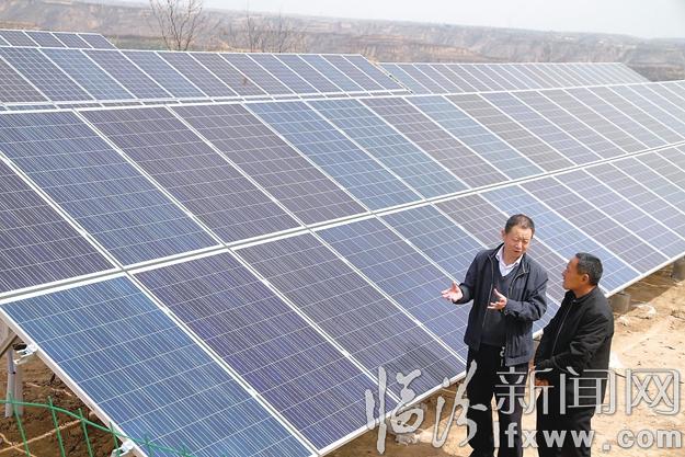 徐新平和村党支部书记冯俊生查看光伏电站完工情况。冯俊生说,徐书记和驻村工作队积极给咱村争取国家扶贫项目,安装好的光伏电站,待并网发电,村集体将实现经济收入“零”突破。