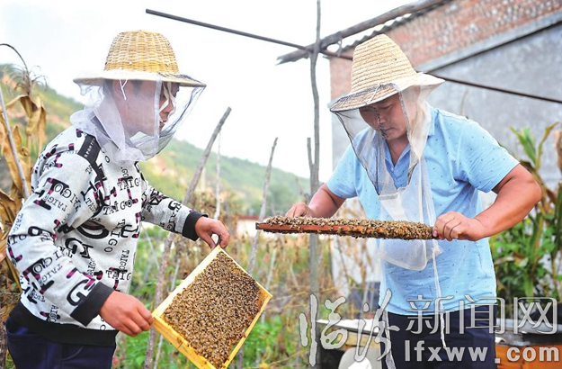 临汾新闻网讯 近日,在大宁县昕水镇石城村,村民查看蜜蜂的采蜜情况。大宁县昕水镇石城村结合当地有利的自然条件,因地制宜发展村民养殖蜜蜂,同时定期邀请技术人员进行蜜蜂养殖技术指导,蜂农从最初的10余户发展到今天的30余户,成为当地村民致富增收的新路子。