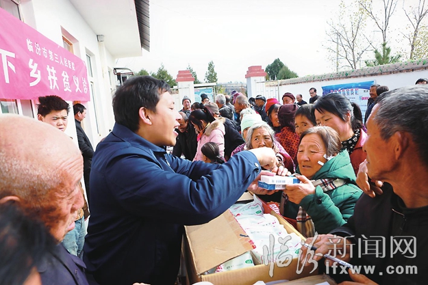 临汾新闻网讯 十一月十七日,在大宁县徐家垛乡乐堂村,十九大代表、白求恩奖章获得者、“摩托村医”贺星龙早早来到村卫生所,为村民登记、发放冬季常用感冒药品。忙碌之余,他还深入村民家中,宣讲十九大精神,现场解答村民疑问,村民说他还是那个好后生、好村医。贺星龙则说:“要不忘初心、牢记使命,继续为大家服好务。”(王辉耀)